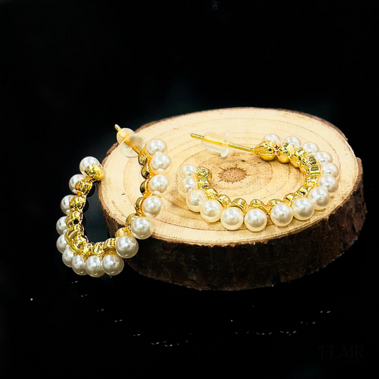 Sold outWhite Gold Pearl Hoops