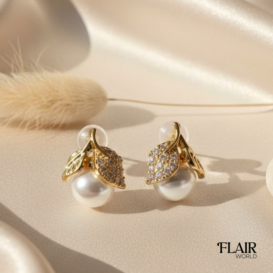 Inverted Leaf Pearl Studs